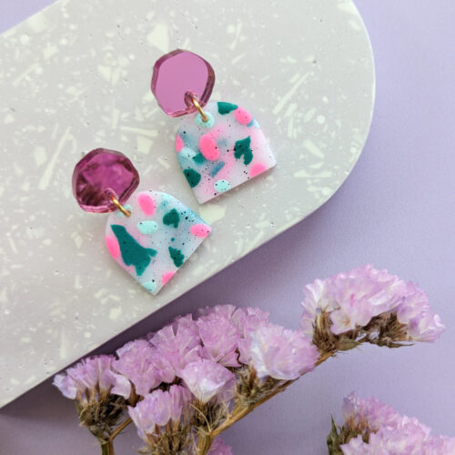 Super Seconds: Neon Pink and Green Confetti drop earrings