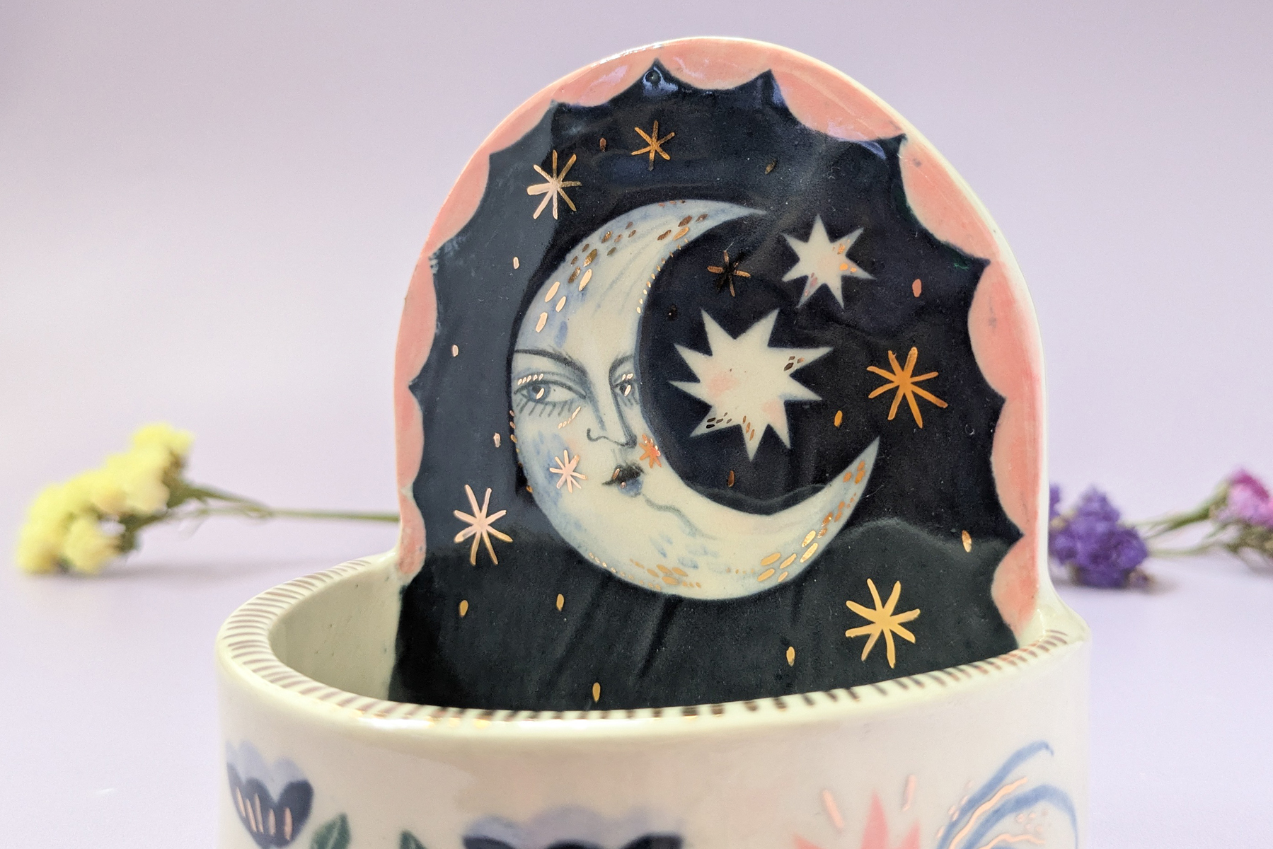 ✸ Materials: Stoneware ceramic, hand-painted underglaze design and finished with 24kt gold lustre.