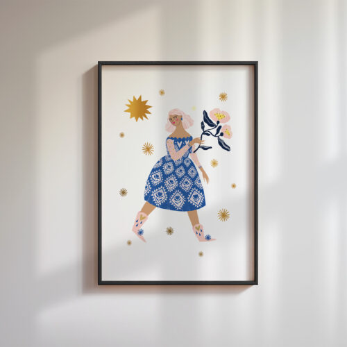 ✹ ✸ A pair of floral adorned cats with rich inky blue tones and pops of lime green and pastel pink details ✸ ✹