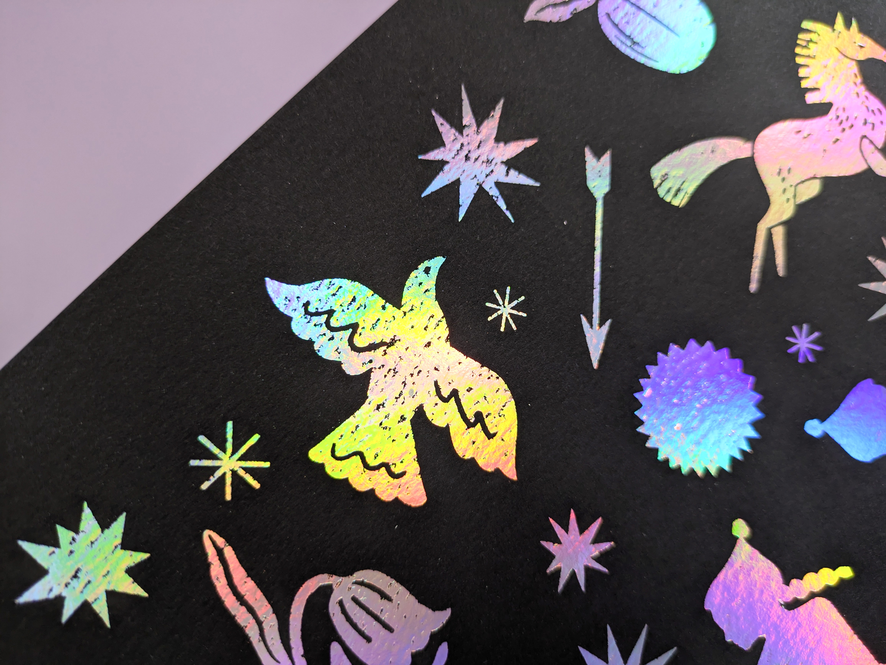 - There’s some black speckling in parts of the foil (please check photos) but as the background colour is also black, this isn’t too distracting from the overall design