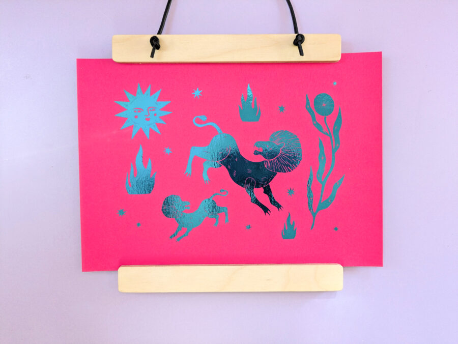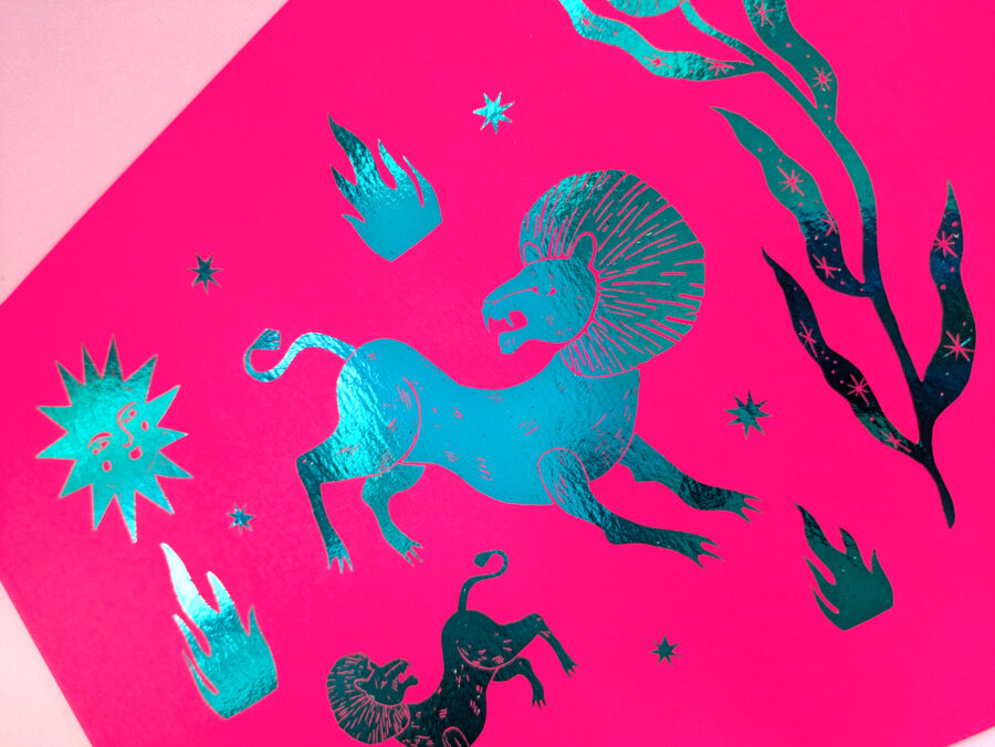 ✸ Teal foiled onto mid-weight hot pink cardstock