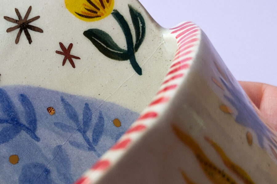 ✸ Materials: Stoneware ceramic, hand-painted underglaze design, 24kt gold lustre
