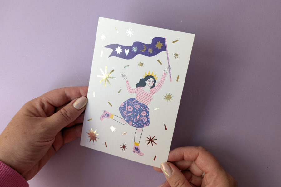 ✸ Materials: 300gsm silk white card with digitally printed design and gold foil details